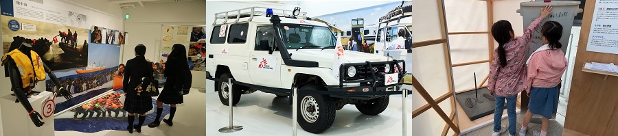 展示だけでなく、会場では活動現地で使用されているテント式手術室や難民キャンプでの簡易トイレの再現、さらには難民が収容される極小スペースを実際の音とともに再現した体験コーナーも設置されます。