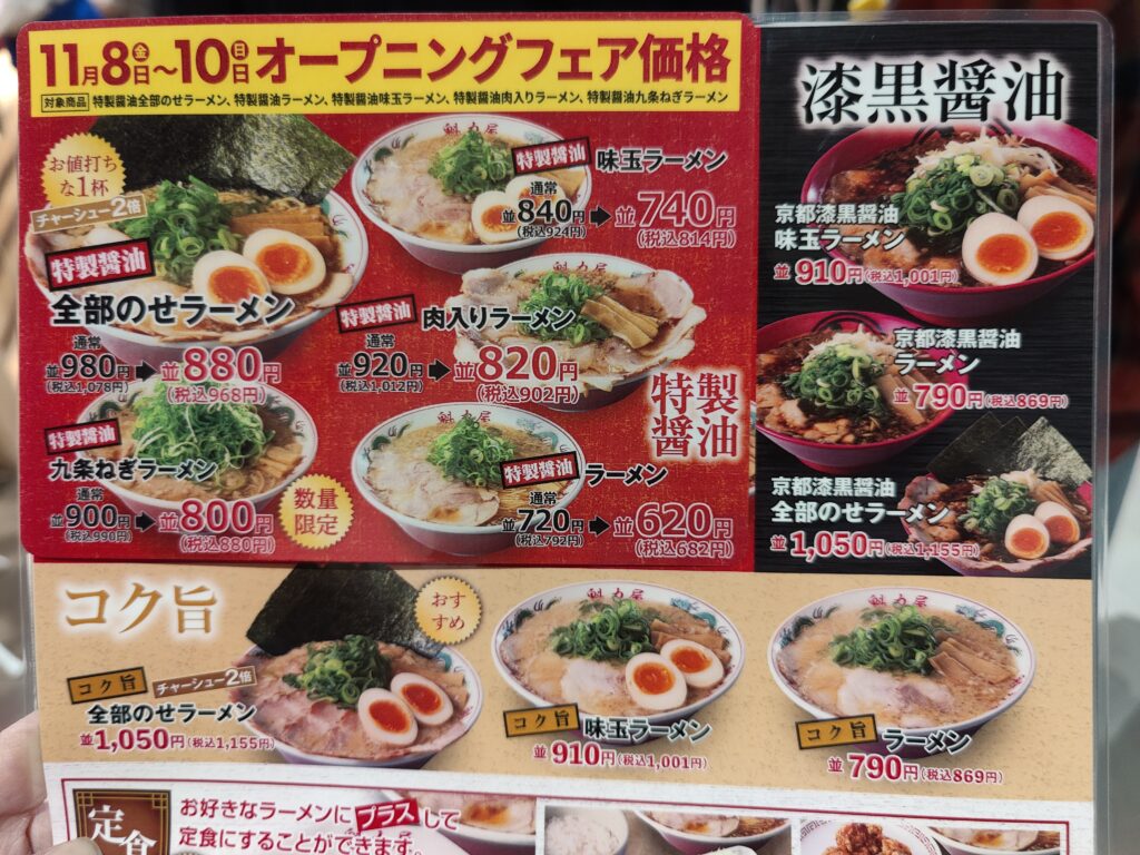 今回は全部のせラーメンを注文しました。京都と言えば九条ねぎがたっぷり。オープンフェア価格で特別価格になっていました。