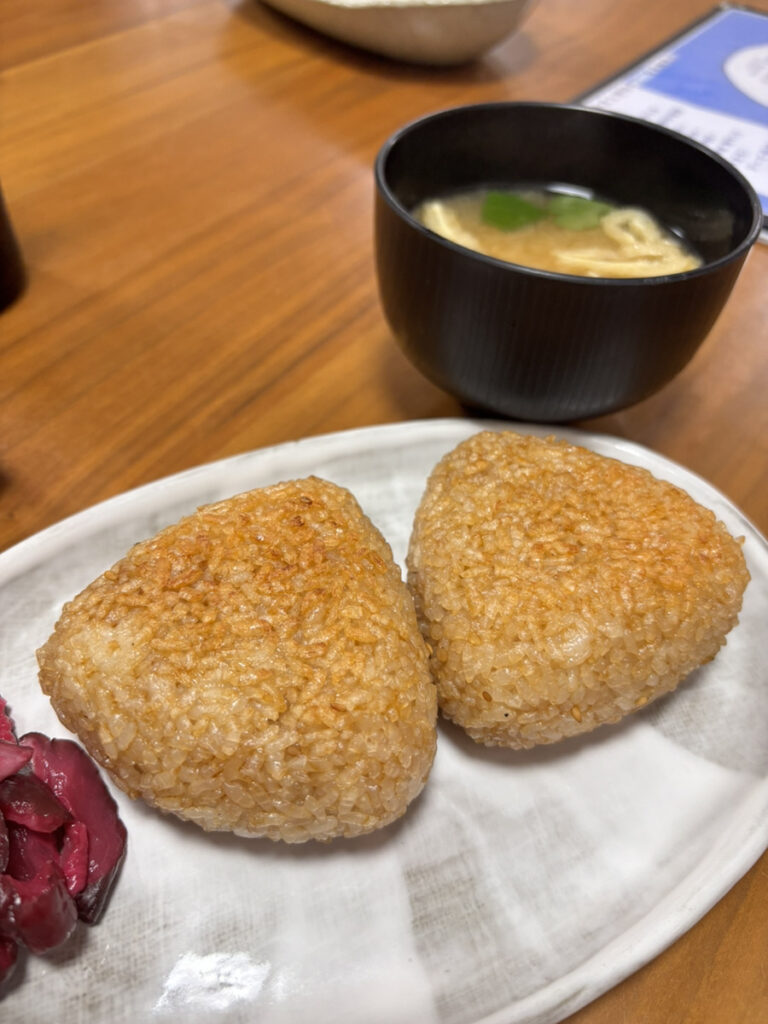 こんがりと焼けた表面が食欲をそそる、まさに黄金色。出汁醤油の香ばしい匂いがふわっと漂い、一口かじると、パリッとした表面の香ばしさ、そしてその中には熱々な温かいご飯。醤油の香ばしさと、米本来の甘みが口の中に広がり、最後にいつも注文しちゃいます!