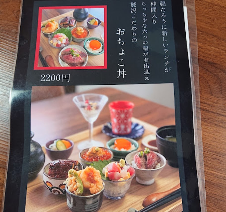 和食歴約35年の店主が作る、目にも舌にも嬉しい料理が味わえるお店です。ランチタイムには、6種類のミニ丼ぶりを楽しめる「おちょこ丼」と、5種類からメインを選べる「福たろう膳」などのランチを提供しています。