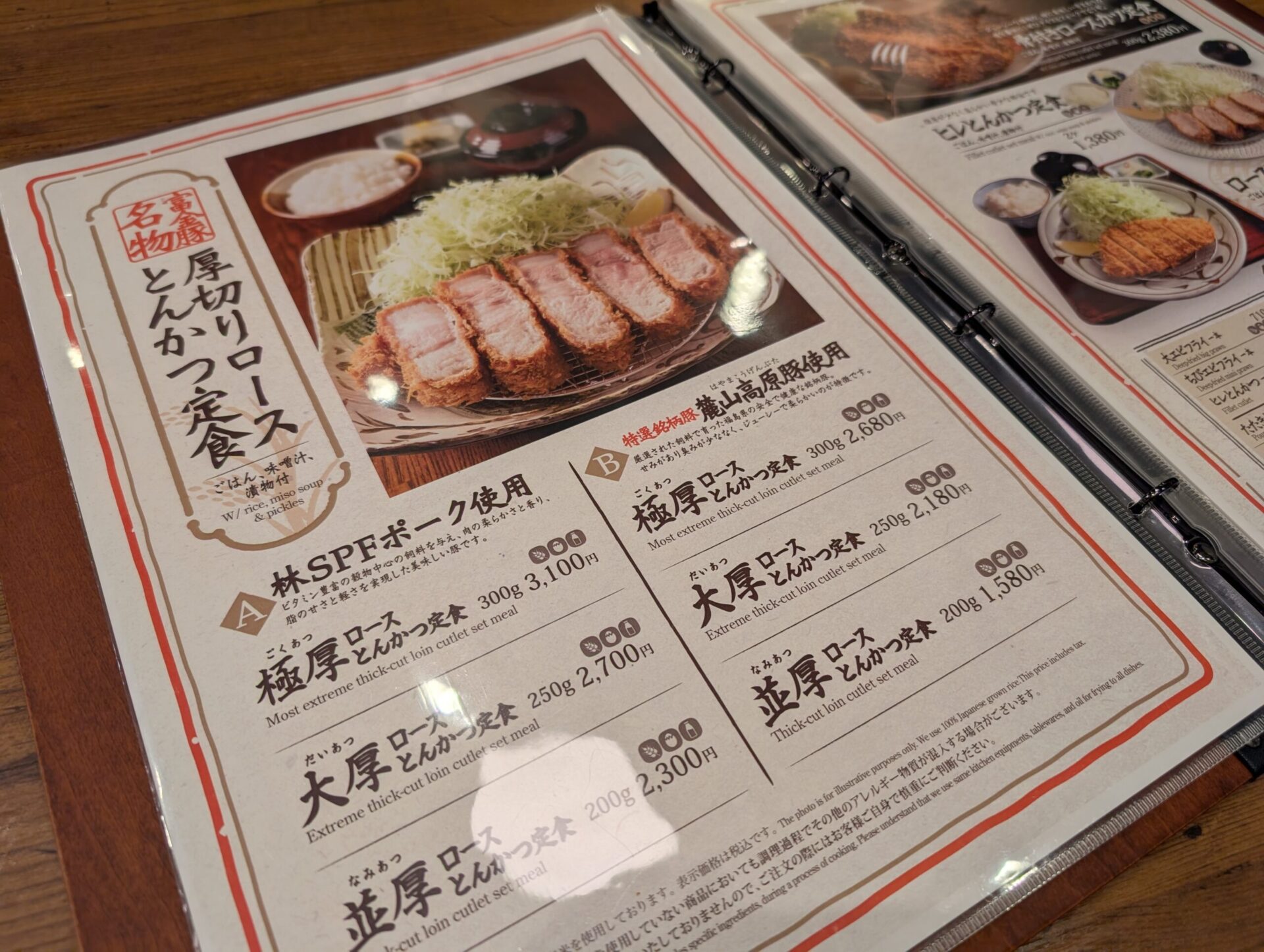 多様なメニューやロースかつ、ヒレとんかつ、牛かつなど、 骨つ付きロースカツ、バラエティ豊かな選択肢のメニューがあります。