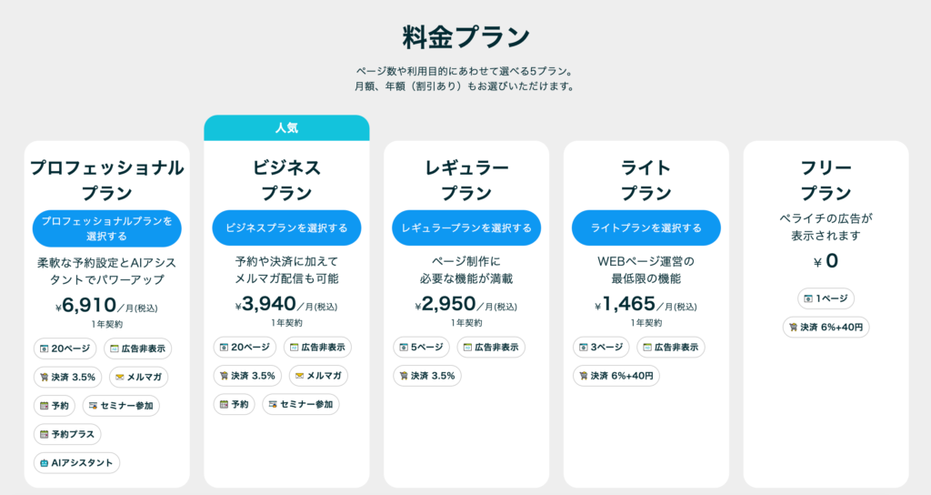 ペライチ料金プランについて